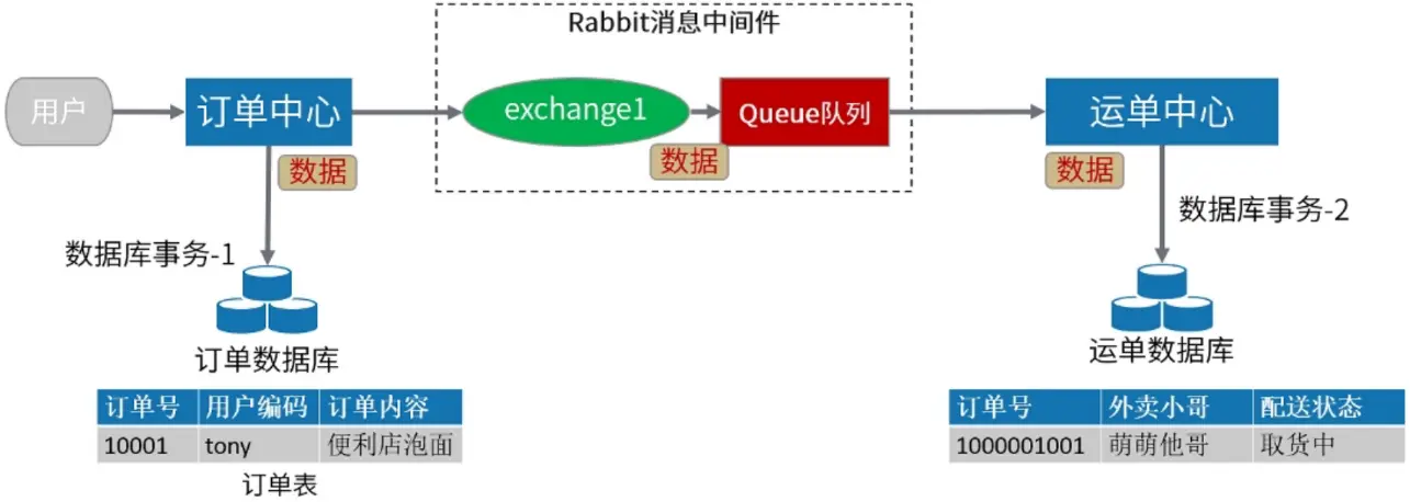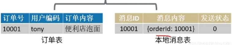 生产者(订单中心应用程序)在保存订单记录的同一个本地事务中,同时将要发送到运单中心的消息保存到本地消息表中;