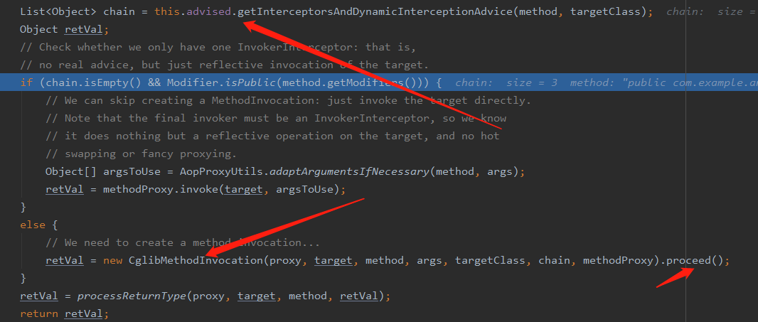 advice方法作为一个调用链chain - 根据这些参数创建
