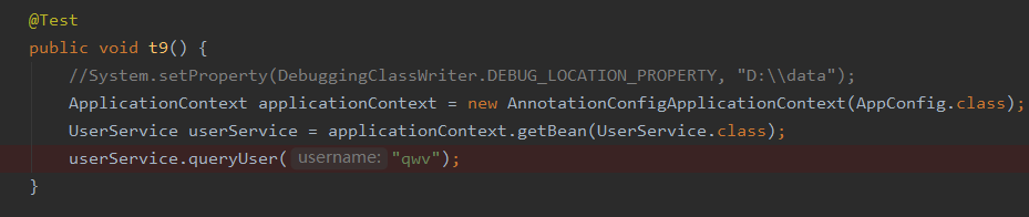 要想应用 advice 逻辑,首先我们需要找到对应的切面,然后我们在其中查看需要在哪些方法中织入对应的 advice 逻辑,比如在 UserServiceImpl 的 queryUser 这个 JoinPoint 切点之后织入 afterQuery