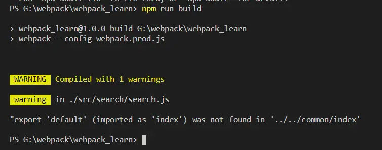 Webpack学习系列(七)优化命令行显示/构建异常和中断处理 Simplyme0823 2020-05-04 630 阅读1分钟 module.exports 设置errors-only状态如果成功就不会有任何提示,如果有worn也不会提示,因此需要引入第三方插件1. npm i friendly-errors-webpack-plugin -D2.修改配置文件3. npm run build 提示warning4. npm run dev 修改源文件状态构建异常和中断处理