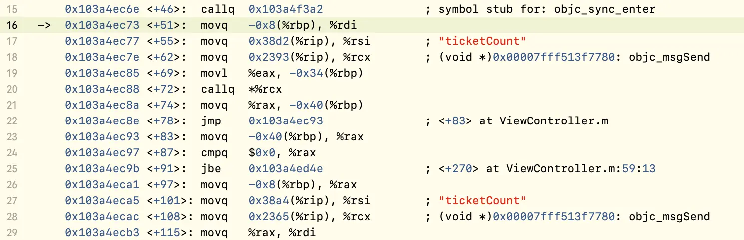 NSLog(@"消费一个 还剩 count %zd ",self.ticketCount);