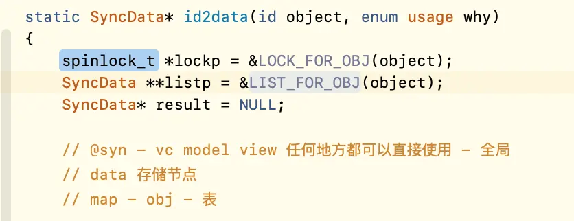 也就是有一个全局的map,是一个个 SynList 表结构,里面有一个个结点 syndata(obj)