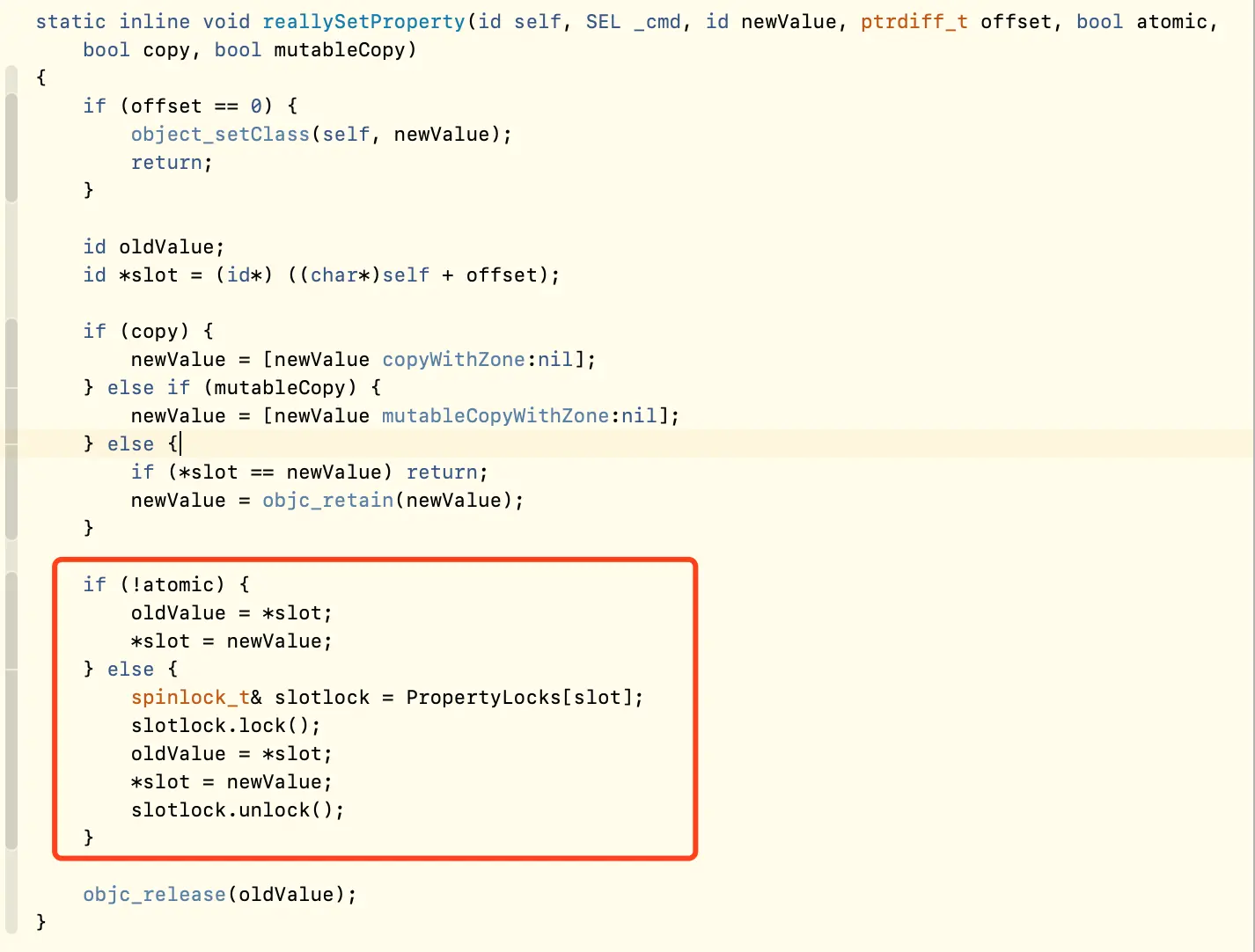 - nonatomic 在赋值时,就直接替换旧值赋值