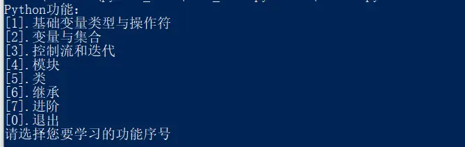 inputStr = input("输入有误,请选择您要学习的功能序号\r\n")