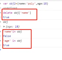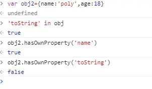 'name'in obj判断不出属性是否继承自原型 obj.hasOwnProperty('name') 可以查看是否属于共有属性