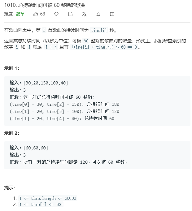 如果单纯地计算两个元素只和是否为60的整数倍,需要判断的情况太多。