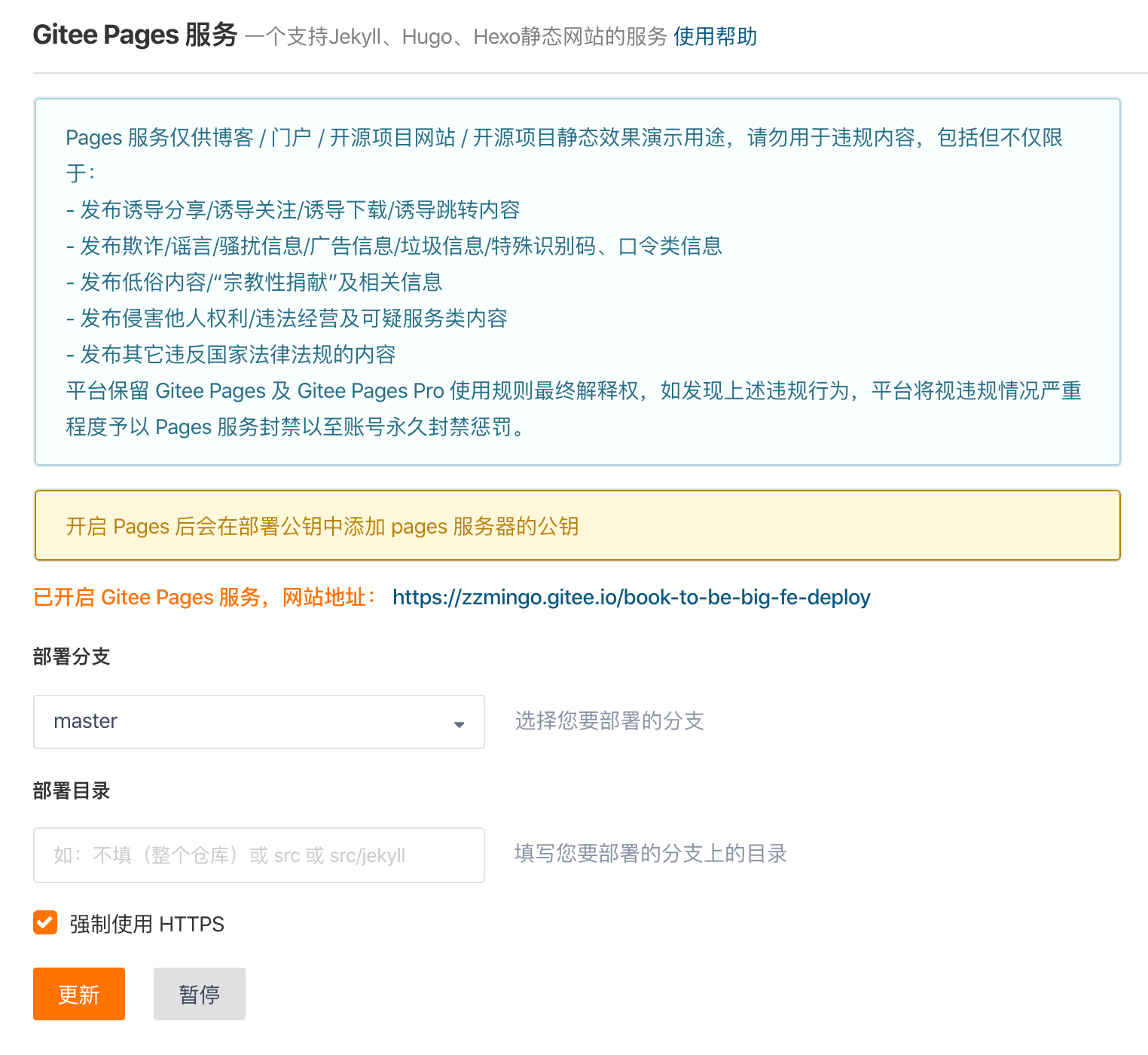 就不一一列举了,但为了免费使用,我们这里将使用gitee代码库加上pages服务来部署,这样