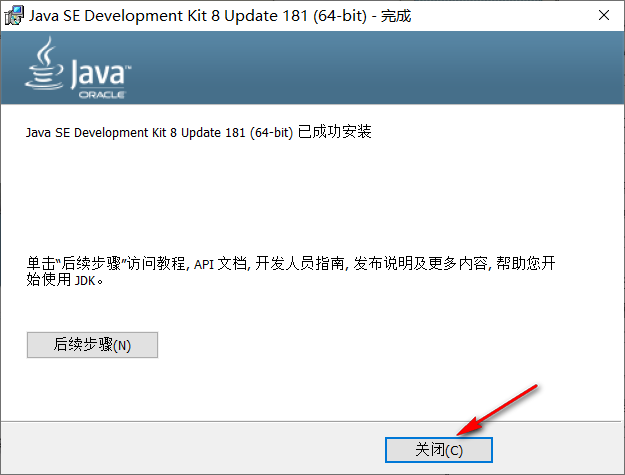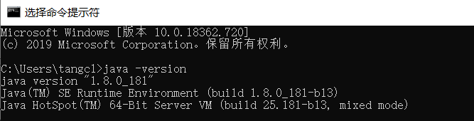 输入命令行java -version,若可以看到JDK的版本信息(1.8.0_181),则说明安装成功。