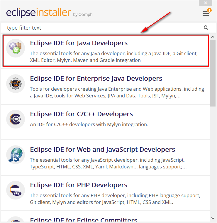 我们这里选择第一个Eclipse IDE for Java Developers。