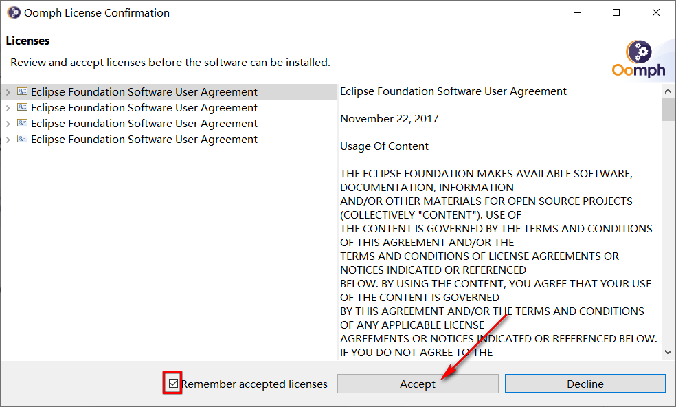 d. 接受许可证。