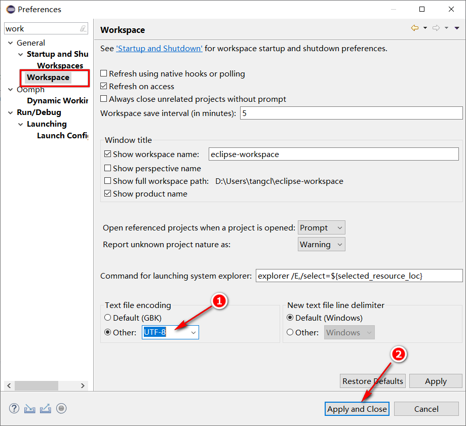 b. 为了方便代码移植,我们将工作空间的编码方式改为“UTF-8”。