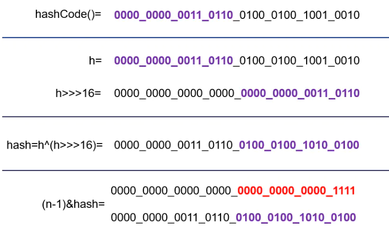 前面我们说的哈希值并不是指key的hashCode值,我们还需要对hashCode值做扰动操作,避免发生哈希冲突。