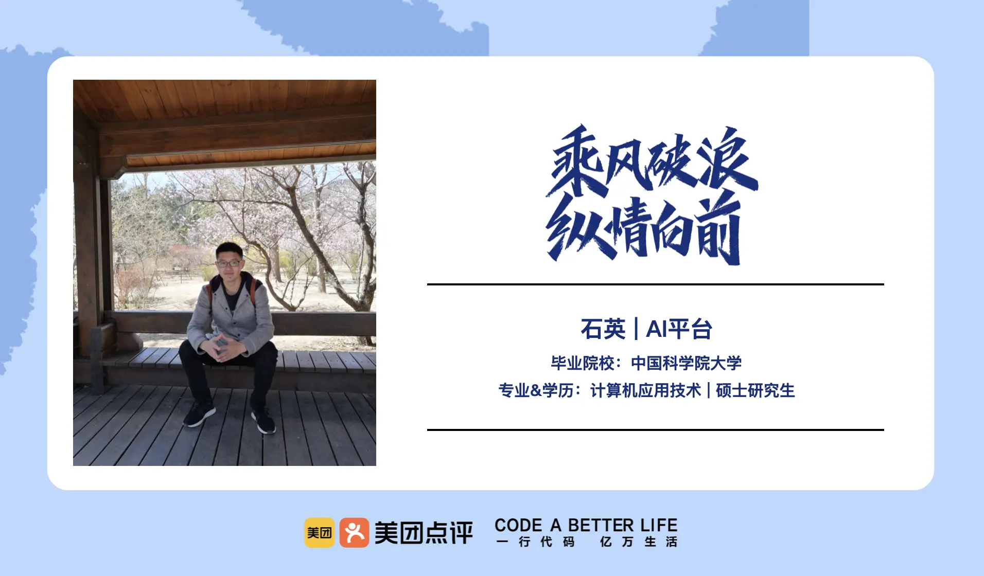 石英:首先,我一直在使用美团、大众点评等App,当时能够感觉到这些产品的用户体验、用户行为数据和UGC数据都有非常高的质量,对于做算法方向的我而言,一家有着大规模、优质数据、真实落地场景的公司是非常具有吸 引力的。其次,美团的整个面试流程简洁明了,各个面试官和Leader都非常Nice,正如我现在的感受一样,我选择了一个积极进取、有目标、有良好氛围的团队。最后,美团在生活服务领域有 很好的用户基础和用户认知,我相信美团未来会做的越来越好,发展潜力也比较大。