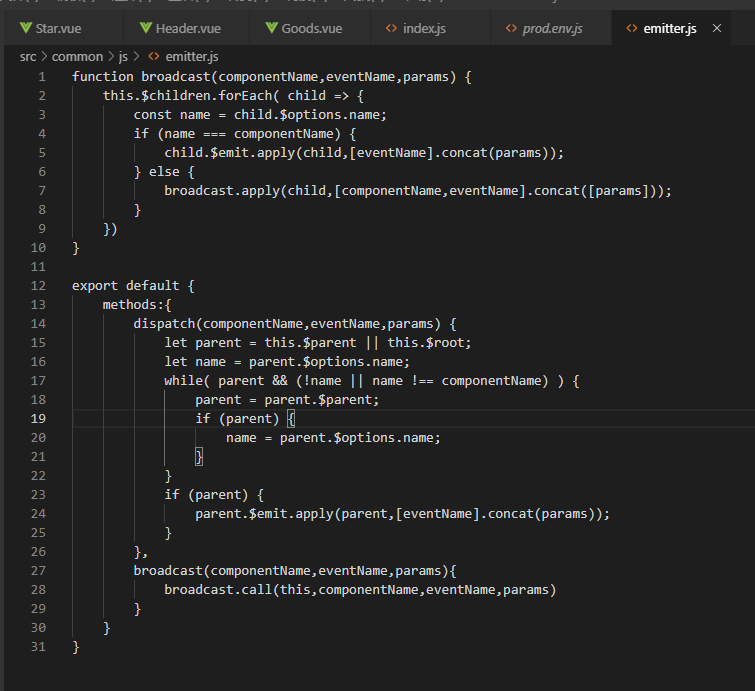 这个是通信类似于这个vux,一个通信的api方法,可以this当前vue的页面,可以显示出子组件里的方法和值,也可以看见父组件的信息,还可以与多包含子组件的上传和下发,比vuex方便,尝试打印出this可以看到vue实例,使用办法是,里面的三个参数一定都有要写,第一个参数为组件名字(不是当前组件名字),第二个参数(随便命名一个方法或者值),第三个参数为(传值的一个命名容器