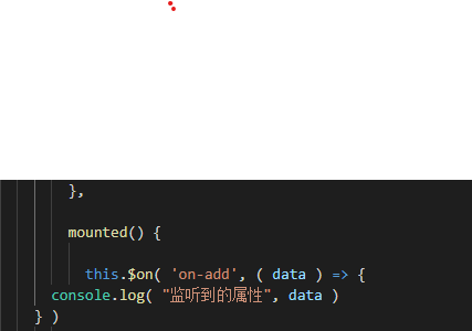 然后就用mouted,这个函数我下一张另外会介绍,不是本章主要内容。用这个this.$on()监听这个信息然后就可以使用,也可以被查到。