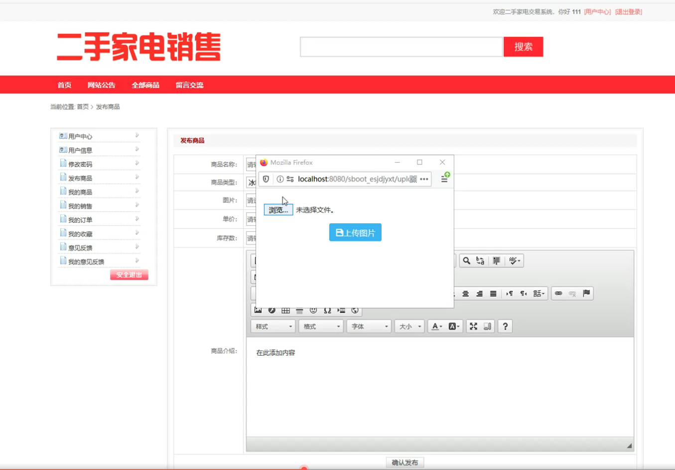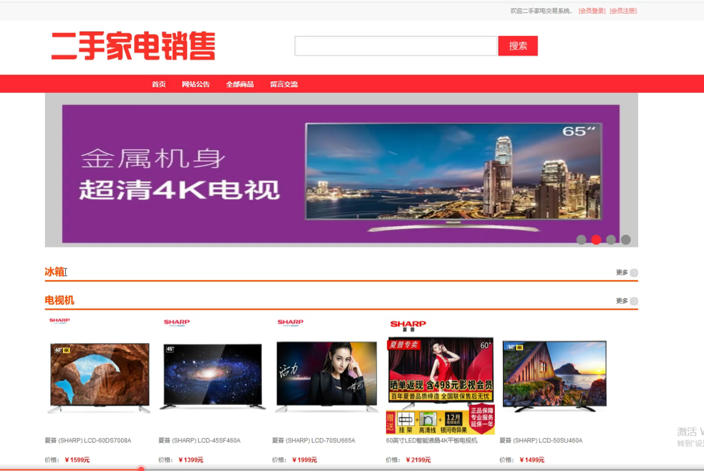 二手家电交易系统(SpringBoot,SSM,MySQL) 优鲜派 2020-05-04 504 阅读1分钟 【项目包含内容】、项目演示视频:51document.cn【视频运行教程】 【开发环境】 Eclipse + JDK1.8 + Tomcat8 + MYSQL项目运行截图: