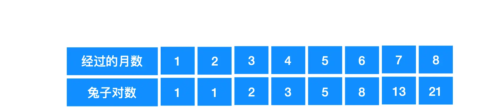 兔⼦繁衍问题: 如果兔子2个⽉之后就会有繁衍能力,那么⼀对兔子每个⽉能生出一对兔子; 假设所有的兔⼦都不死,那么n个⽉后能⽣成多少只兔子?