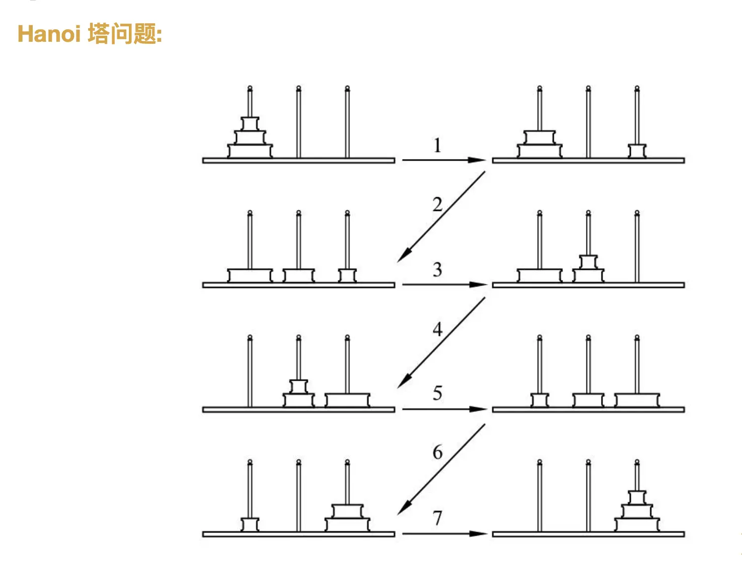 - 问题是递归的: 八皇后问题,兔子繁衍问题,hanoi塔问题