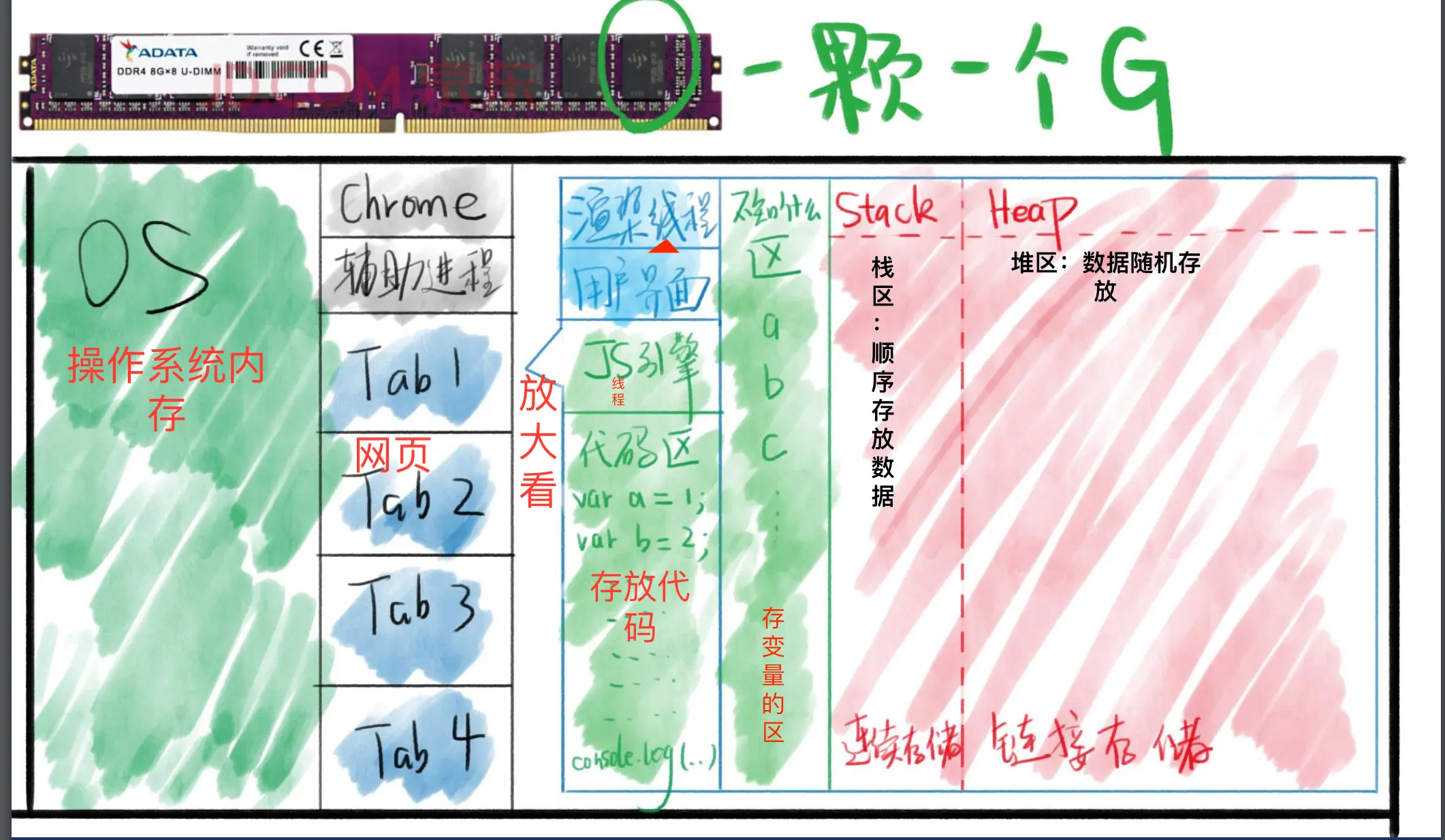 - 红色专门用来存放数据,前端最重要的区