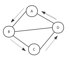 - 2的下一个为1, 已经遍历, 跳往4