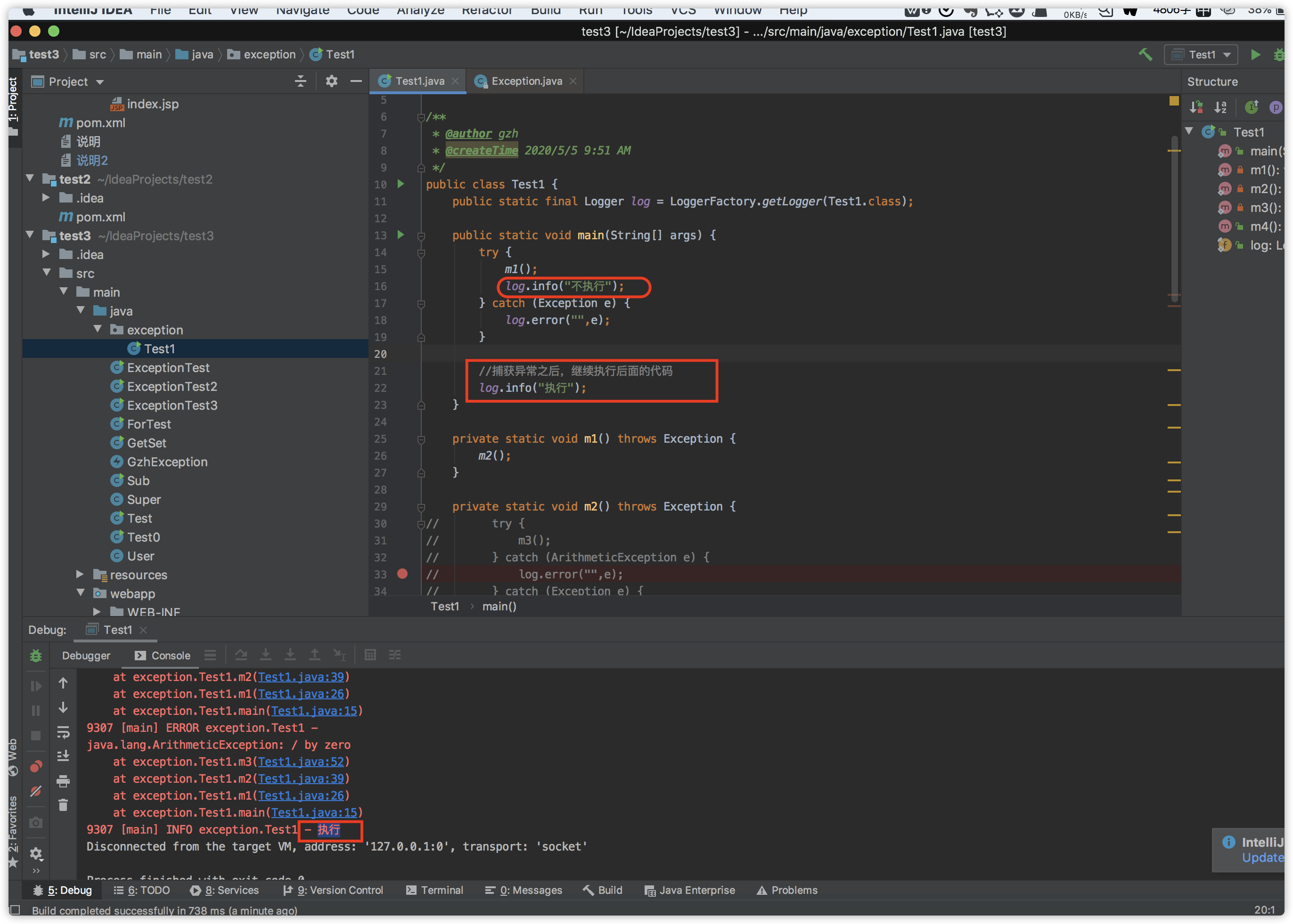 2.如果捕获之后,只是打印日志,没有抛出异常,那么try代码块里面异常之后的代码不会执行,但是catch和catch之后的代码仍然还是会执行。