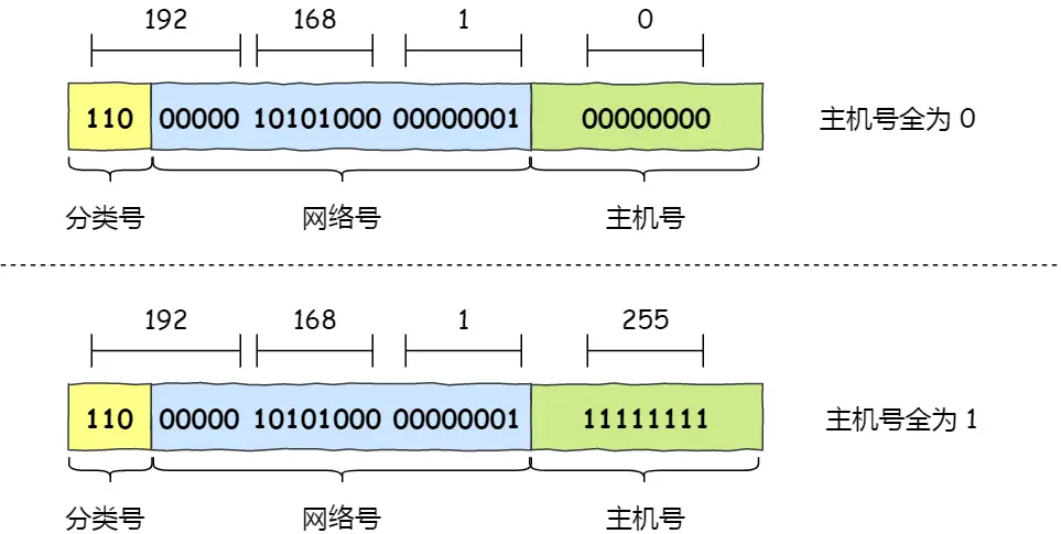 因此,让 43 亿台计算机全部连网其实是不可能的,更何况 IP 地址是由「网络标识」和「主机标识」这两个部分组成的,所以实际能够连接到网络的计算机个数更是少了很多。