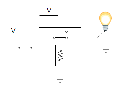 以这种方式连接的继电器,叫做反向器(inverter)。