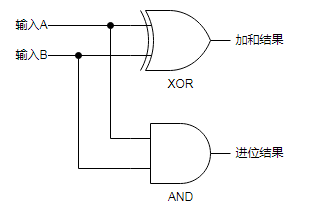 - 异或门可以求加和,与门可以求进位,组合起来就变成一个半加器;