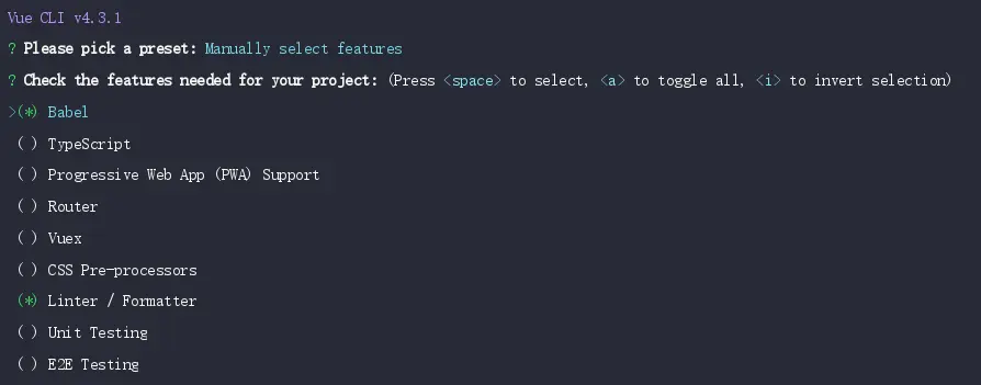 Manually select features 是 自定义配置,需要我们手动配置,可以自己选择需要配置什么东西