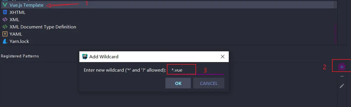 File->Settings->Editor->File Types->往下划找到Vue.js Template->选中它并点击右边的 + 号, 输入*.vueOK即可