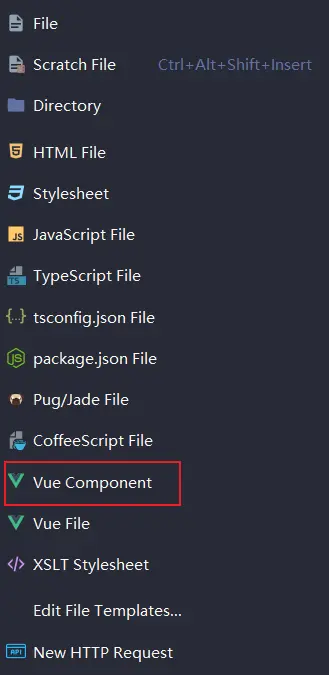 在src目录右键new一个文件的时候就可以看到有一个Vue Component啦