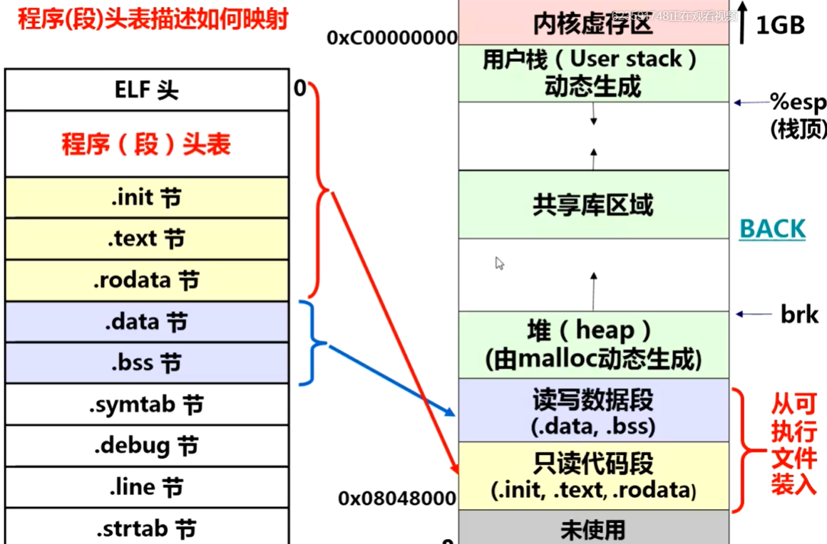 - bss 段(全局未初始化区)存放未初始化的全局变量和静态变量,区别初始化和非初始化是为了空间效率。未初始化变量不占据实际内存空间(bss变量只在段表中记录大小,在符号表中记录符号。当文件加载运行时,才分配空间以及初始化),BBS段在程序执行之前会被系统自动清0,所以未初始化的全局变量和静态变量在程序执行之前已经为0。(也正是因为反正在bss上的变量肯定都是0,所以不需要为他们分配空间)