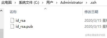先打开c盘>用户>当前用户 查看是否有.ssh文件夹,若没有则手动生成ssh密钥