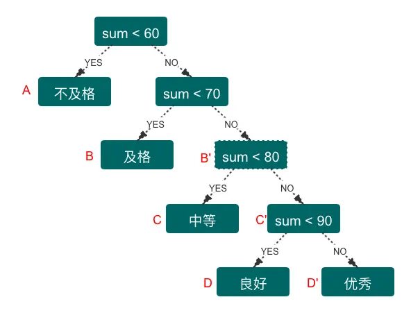 通常我们使用WPL(树的带权路径长度)来计算优质性,权重值就是学生所占比例 x 树到指定节点的路径
