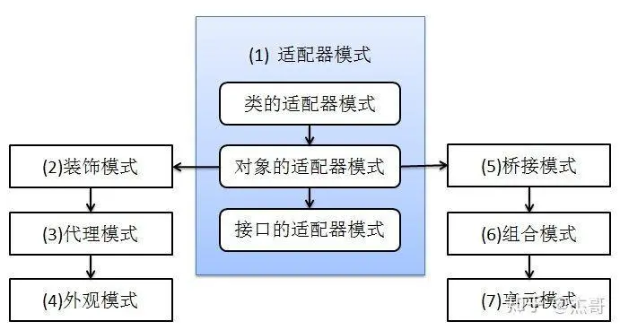 7种结构型模式:适配器模式、装饰模式、代理模式、外观模式、桥接模式、组合模式、享元模式。其中对象的适配器模式是各种模式的起源,我们看下面的图: