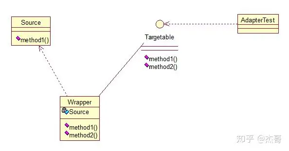 对象的适配器模式:当希望将一个对象转换成满足另一个新接口的对象时,可以创建一个Wrapper类,持有原类的一个实例,在Wrapper类的方法中,调用实例的方法就行。