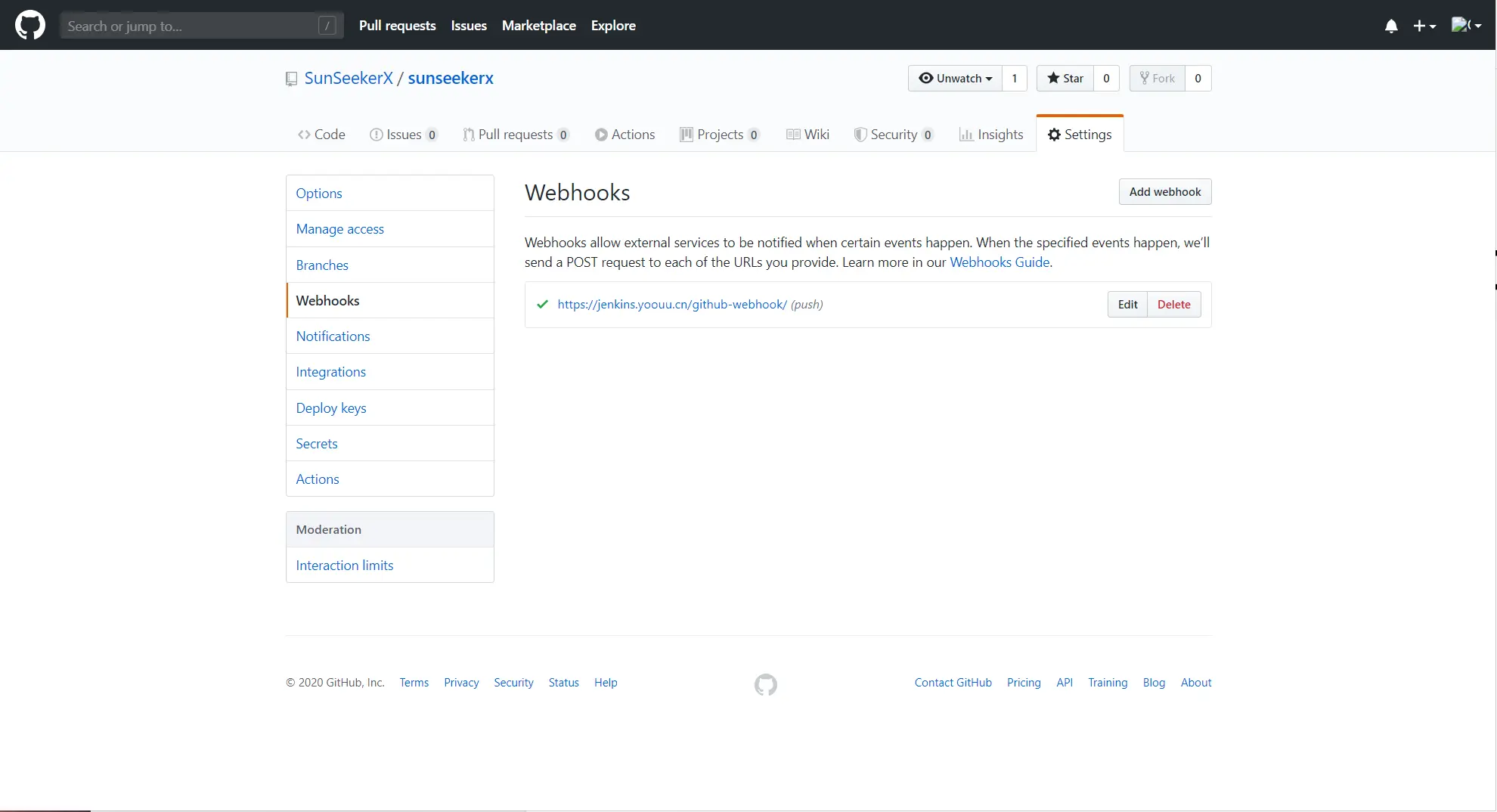 前提是Git需要能访问到你的Jenkins,一旦有代码提交上来,Git就会去请求你这个地址,然后Jenkins触发构建动作。