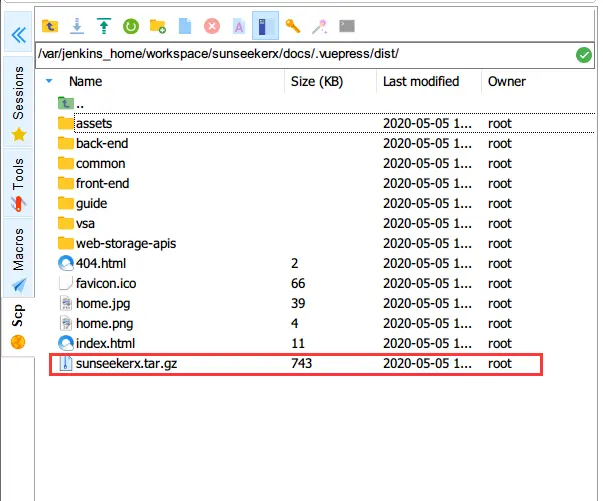执行完成之后会在服务器生成sunseekerx.tar.gz,下一步就是把这个文件发送到指定部署的服务器。进行解压。
