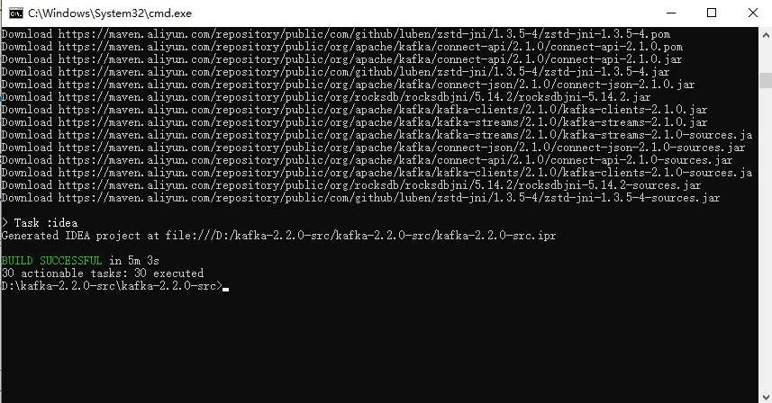 最后,在kafka最里面的目录下面执行命令gradle idea