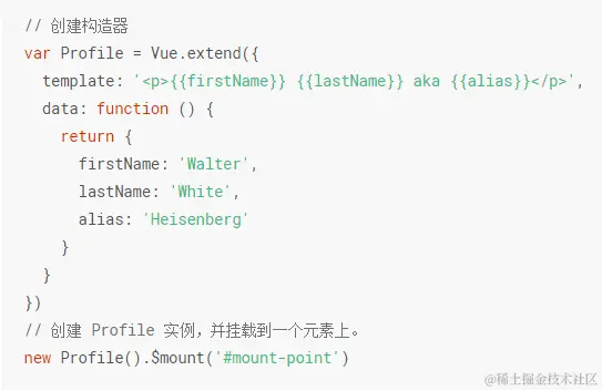 }).$mount(); //执⾏挂载函数,但未指定挂载⽬标,表示只执⾏初始化⼯作