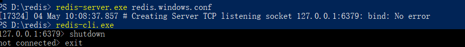 redis-cli.exe shutdown exit