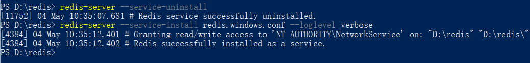 - 先卸载: redis-server --service-uninstall