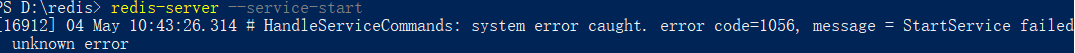 [16912] 04 May 10:43:26.314 # HandleServiceCommands: system error caught. error code=1056, message = StartService failed: unknown error