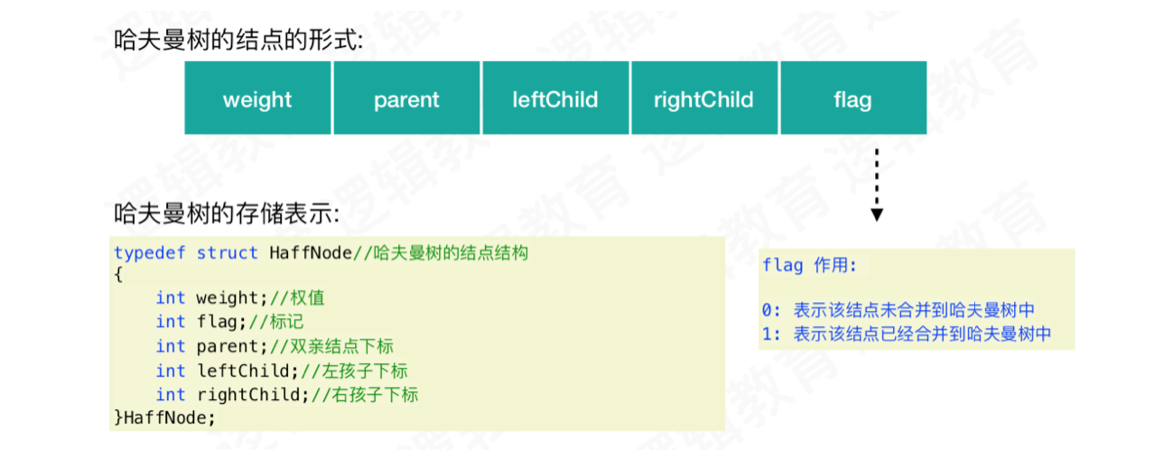 haffTree[i].flag = 0; // flag标记是否已经加入树中