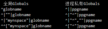 ^ ["namespace"]global和^|"namespace"|global. -