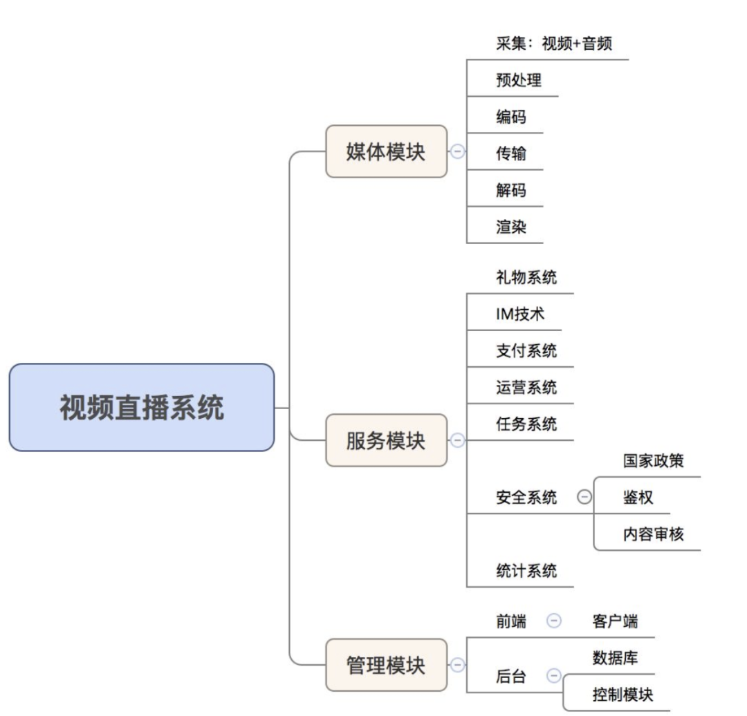 包括礼物系统、IM技术、支付系统、运营系统、任务系统、安全系统、统计报表。