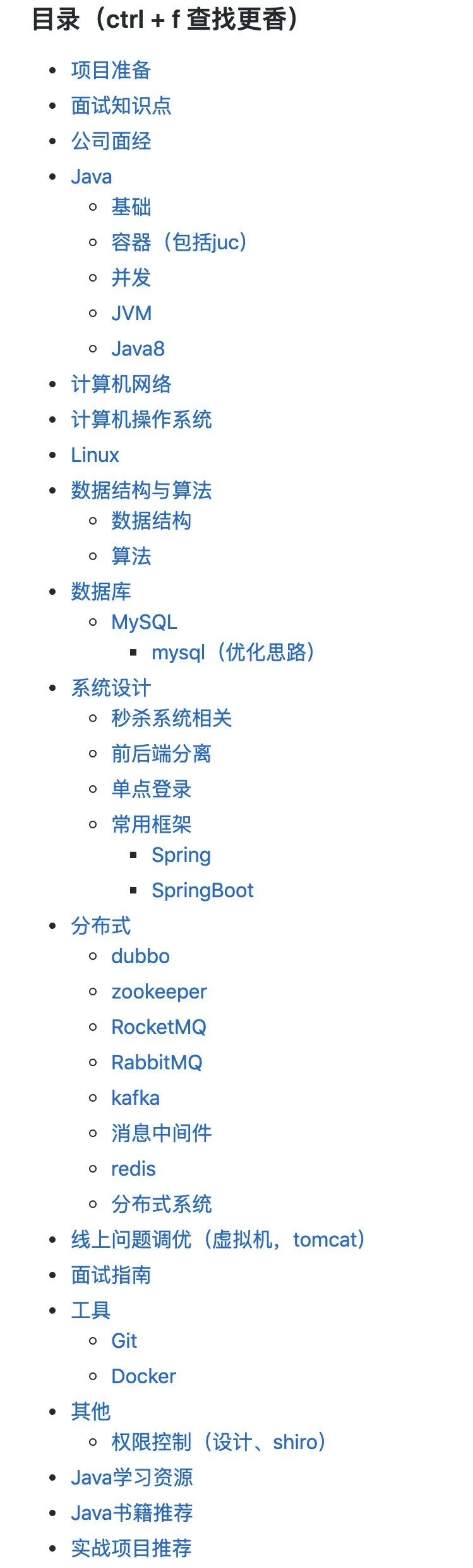 此手册内容专注 Java面试 ,这是本人花费了半年的时间总结的【Java 面试 + Java 后端技术学习指南】,目前本人已经拿到了腾讯等大厂offer,只要大家把这上面的知识点都搞明白,进入前 50 的互联网公司是绝对没有问题的,希望对大家的面试有一定的帮助。