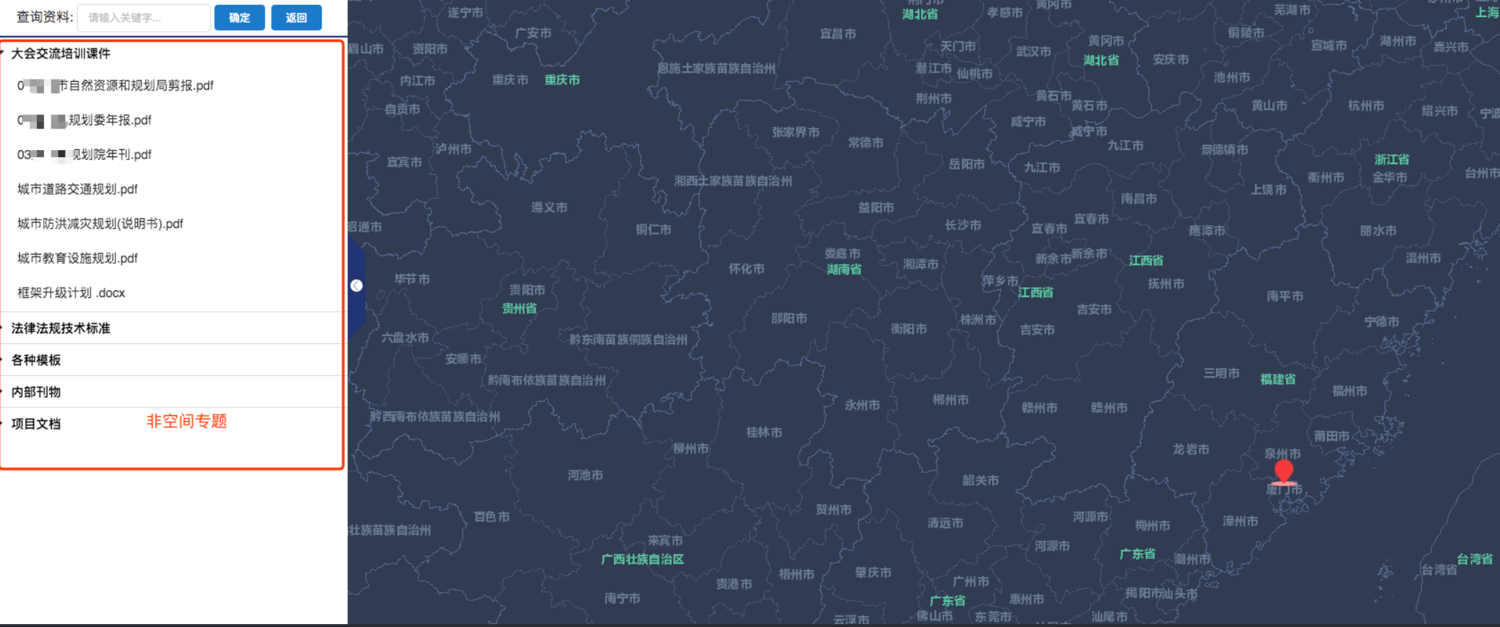 如图是非空间专题,可以看到的都是一些规划相关的项目资料,这些文件可以预览、下载等。
