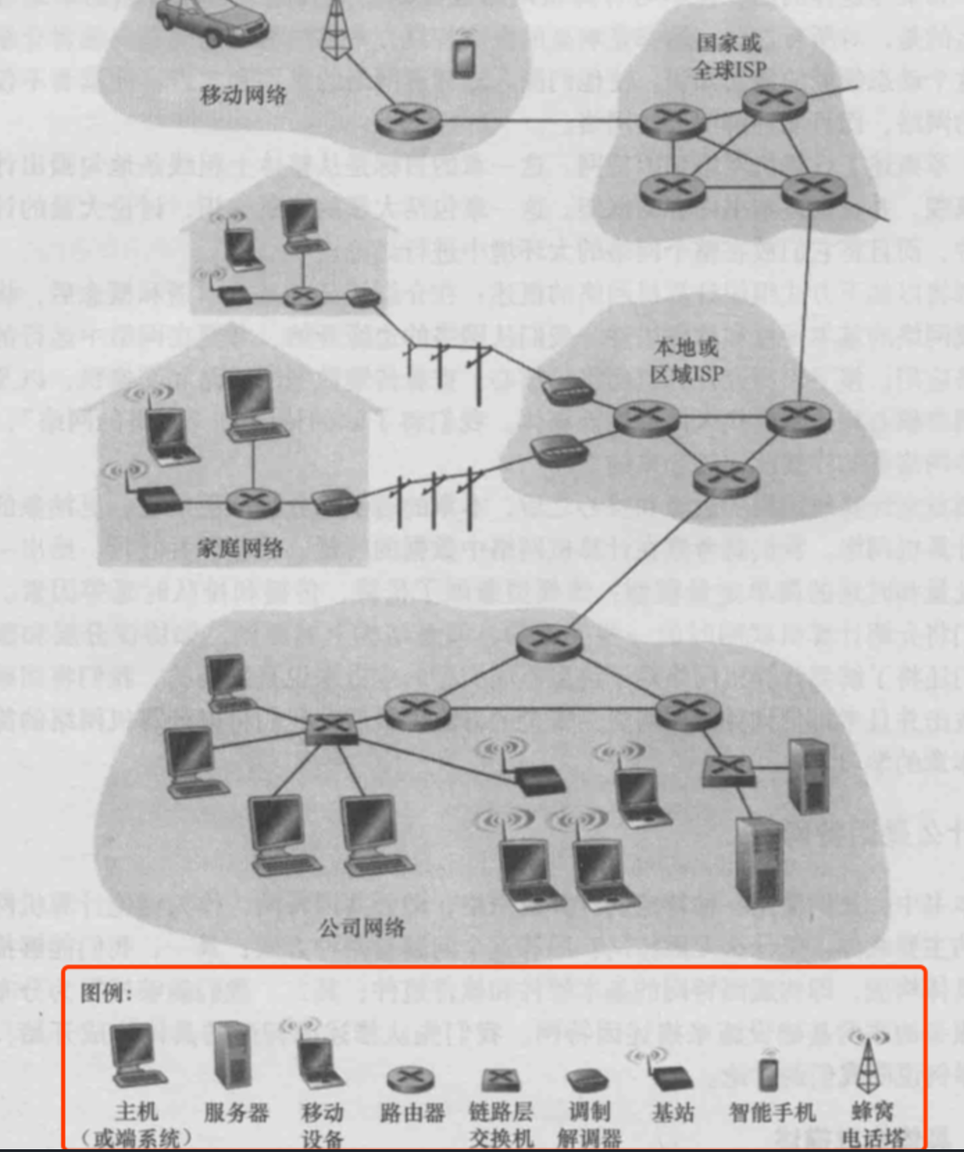 其实不仅仅是地图中有图例,任何一张图片,如果有必要都可以添加图例。例如,计算机网络的部件图: