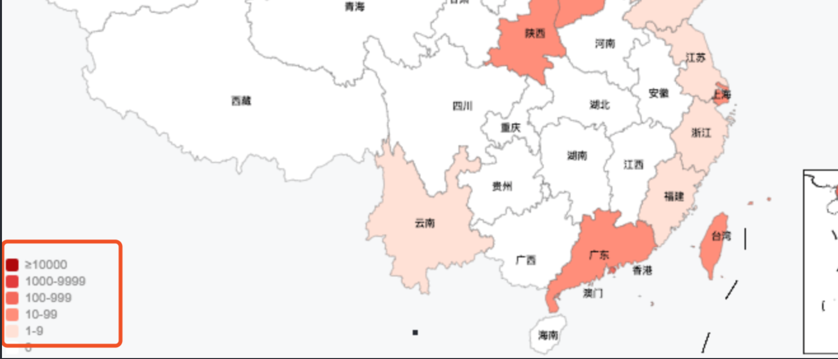 专题地图跟普通的地图不同的是,它可以让用户看出从数据记录上难以发现的模式和趋势。例如 2020 年的某一时间下的新冠肺炎的疫情地图,对各个地图的感染人口分布。